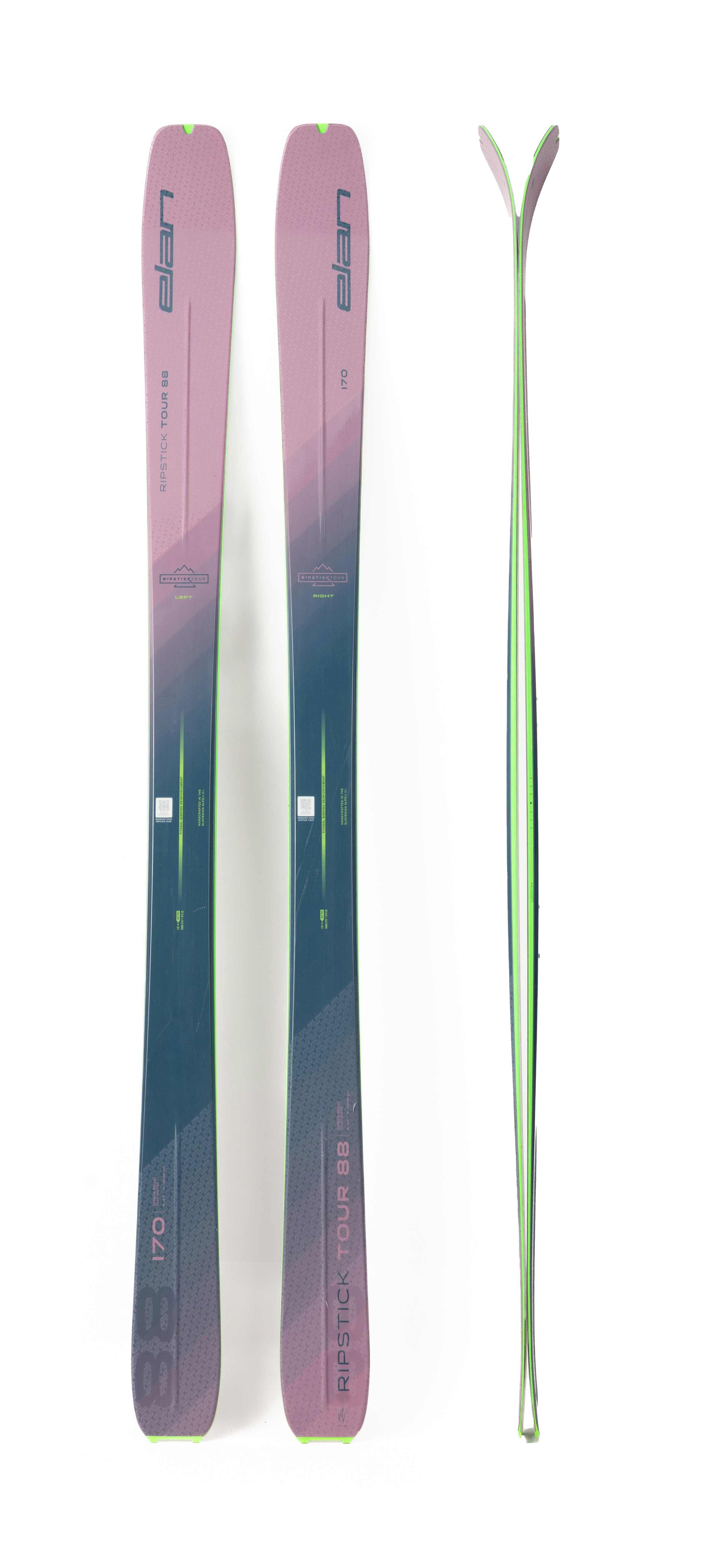Elan has a long tradition of making skimo skis, and their Ripstick Tour, in particular, is the core of the Slovenian brand's selection for backcountry skiers. It's positioned midway between the lightweight Lynx and the freeride Ripstick, inheriting some of the Ripstick's philosophy while losing some of its weight. Alongside the 88 tested, there are also a 94 and a 104, but the 104 doesn't come in a version for women. The carbon-reinforced construction focuses on skiability and solidity. The shape of the two skis is asymmetrical, so everything we said for the version for men applies here, too.